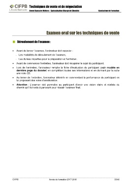 • Attention : L’examen doit permettre au participant d’avoir une vision claire et réaliste du
