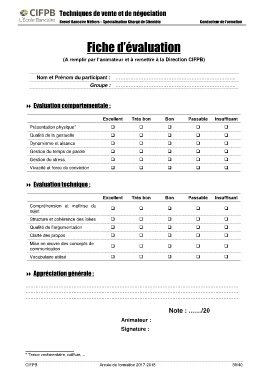 Fiche d’évaluation