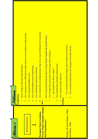 Kontekstualisasi: Persiapan Materi Sosialisasi Proyek (Materi Dampak Sampah Waktu: 80 menit Bahan: Slide