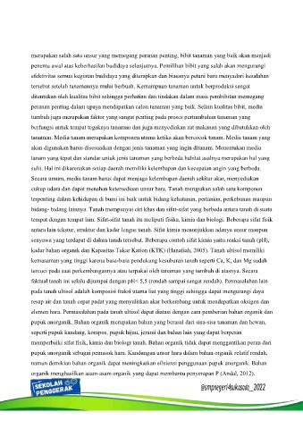 peranan penting dalam upaya mendapatkan calon tanaman yang baik. Selain kualitas bibit, media