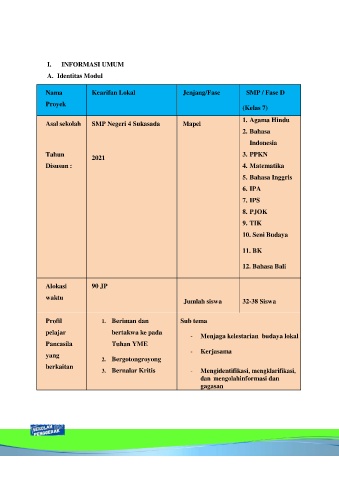 Nama Kearifan Lokal Jenjang/Fase SMP / Fase D