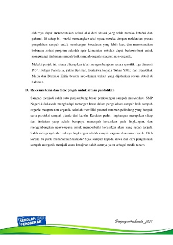 D. Relevansi tema dan topic projek untuk satuan pendidikan