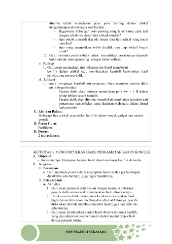- Siswa mampu Menyusun laporan hasil observasi kasus konflik di media