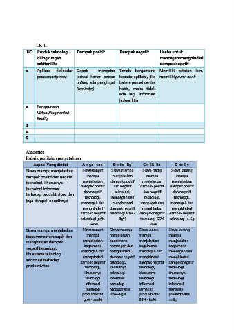 NO Produk teknologi Dampak positif Dampak negatif Usaha untuk