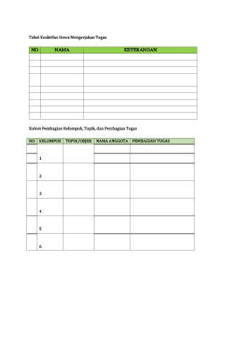 Kolom Pembagian Kelompok, Topik, dan Pembagian Tugas