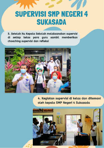 SUPERVISI SMP NEGERI 4 SUKASADA 3. Setelah itu Kepala Sekolah melaksanakan supervisi di setiap kelas para guru sambil memberikan choaching supervisi dan refleksi 4. Kegiatan supervisi di kelas dan ditemani oleh kepala SMP Negeri 4 Sukasada