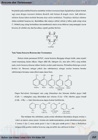 dalam molekul benzena ini, disebabkan oleh adanya orbital-orbital p bebas pada setiap atom