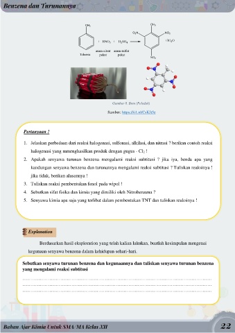 5. Senyawa kimia apa saja yang terlibat dalam pembentukan TNT dan tuliskan reaksinya !