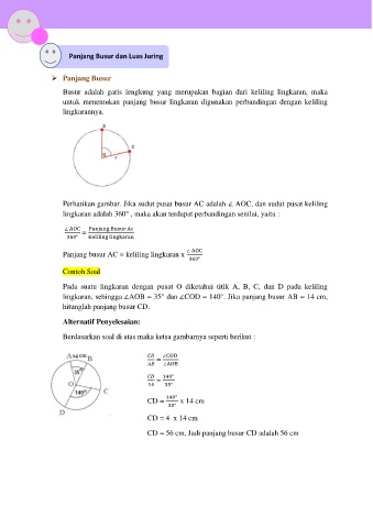 lingkaran, sehingga ∠AOB = 35° dan ∠COD = 140°. Jika panjang busur AB = 14 cm,