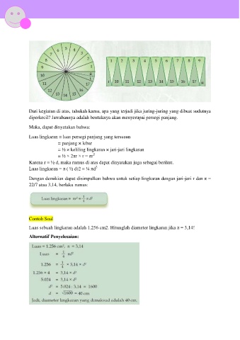 Luas lingkaran = luas persegi panjang yang tersusun