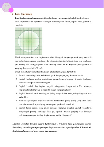 Luas lingkaran dapat diperkirakan dengan bantuan petak satuan, seperti pada gambar di