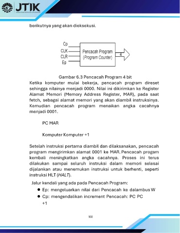 program mengirimkan alamat 0001 ke MAR. Pencacah progam