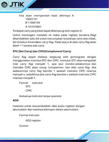Carry flag dapat diakses langsung oleh pemrogram dengan
