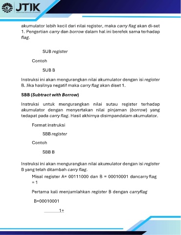 akumulator lebih kecil dari nilai register, maka carry flag akan di-set
