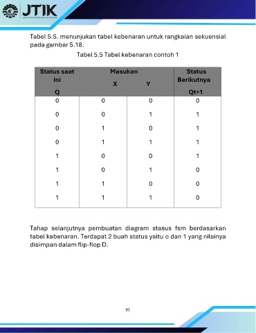 Tabel 5.5. menunjukan tabel kebenaran untuk rangkaian sekuensial