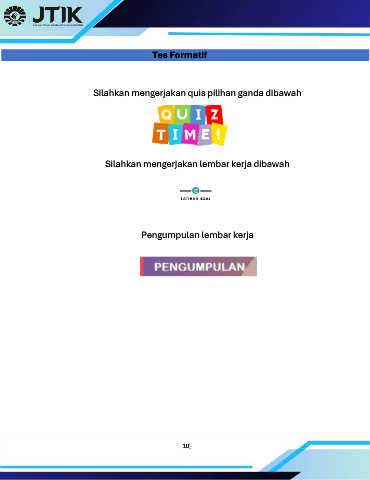 Tes Formatif Silahkan mengerjakan quis pilihan ganda dibawah Silahkan mengerjakan lembar kerja dibawah Pengumpulan lembar kerja 103