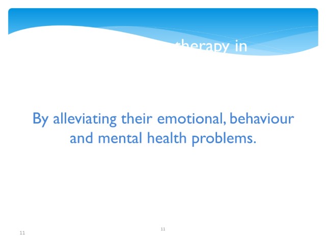 The purpose of play therapy in schools is to help the children benefit from teaching. By alleviating their emotional, behaviour and mental health problems. 11 11