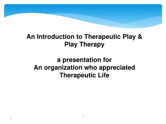 An Introduction to Therapeutic Play & Play Therapy a presentation for An organization who appreciated Therapeutic Life 1 1