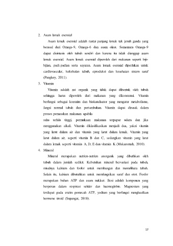 lemak esensial. Asam lemak esensial diperoleh dari makanan seperti biji-