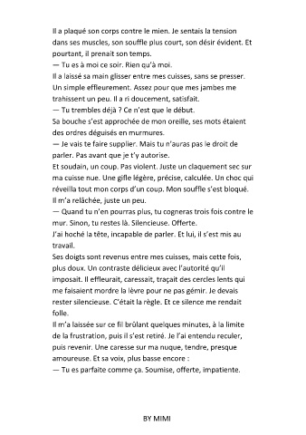 — Tu es parfaite comme ça. Soumise, offerte, impatiente.