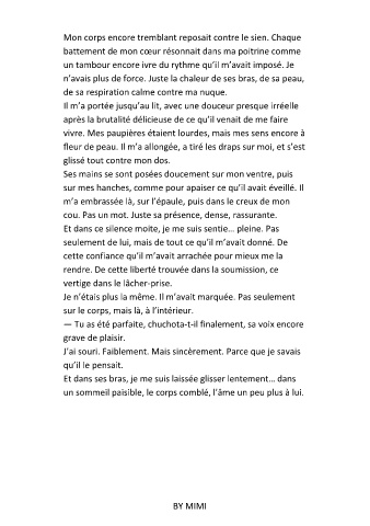 Mon corps encore tremblant reposait contre le sien. Chaque