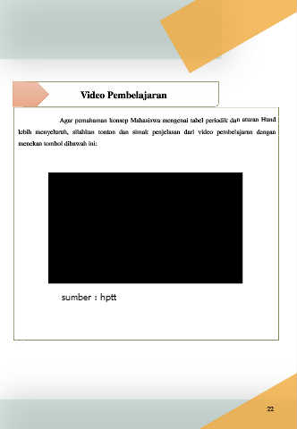 Video Pembelajaran Agar pemahaman konsep Mahasiswa mengenai tabel periodik dan aturan Hund lebih menyeluruh, silahkan tonton dan simak penjelasan dari video pembelajaran dengan menekan tombol dibawah ini: 22