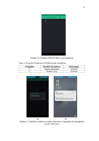 Gambar 11. Notifikasi terkirim (a) ketika Smartphone digunakan (b) Smartphone