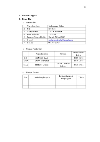 5. Tempat, Tanggal Lahir Dumai, 24 Mei 2003