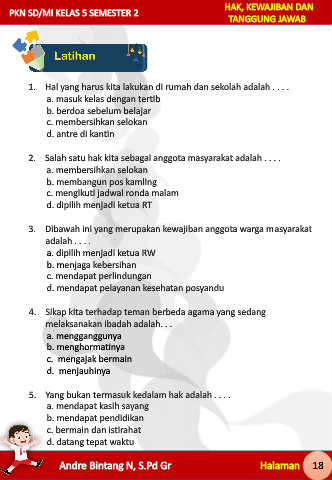 PKN SD/MI KELAS 5 SEMESTER 2 HAK, KEWAJIBAN DAN