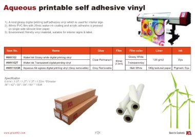 1). A kind glossy digital printing self adhesive vinyl which is used for interior sign.
