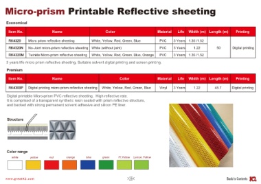 RK4320N     No-Joint micro-prism reflective sheeting White (without joint)                       PVC      3 Years      1.22           50        Digital printing
