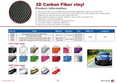 CF01                   3D carbon fiber sticker                                              150 micron         1.52m                  30m