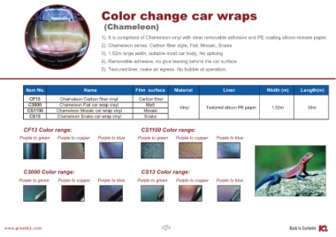 1). It is comprised of Chameleon vinyl with clear removable adhesive and PE coating silicon release paper.