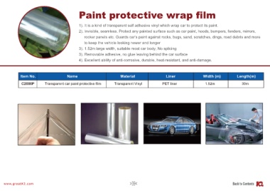1). It is a kind of transparent self adhesive vinyl which wrap car to protect its paint.