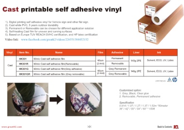1). Digital printing self adhesive vinyl for Vehicle sign and other flat sign.
