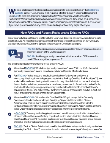 existing FAQs. As reported in Claims Administrator Status Report No.13 filed on July 29, 2021,