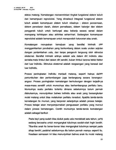 dalam proses kematangan. Contih munculnya tanda-tanda kematangan