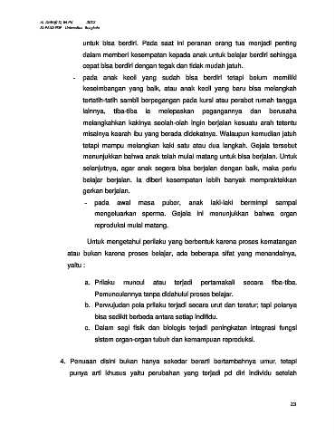 menunjukkan bahwa anak telah mulai matang untuk bisa berjalan. Untuk