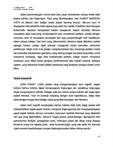 antara individu dan lingkungan. Teori yang dikembangkan oleh ALBERT BANDURA