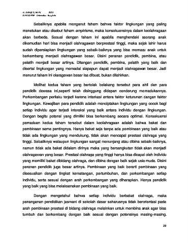 berkembang menjadi olahragawan besar. Disini peranan pendidik, pembina, atau