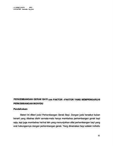 erat hubungannya dengan perkembangan gerak. Yang dinamakan bayi adalah individu