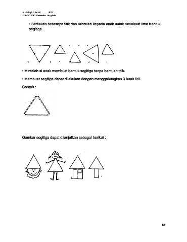 • Mintalah si anak membuat bentuk segitiga tanpa bantuan titik.