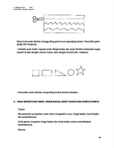 Mula-mula anak diminta menggunting garis lurus sepanjang kertas. Kemudian garis