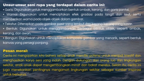 Cerita ini mengajarkan kita bahwa setiap anak memiliki potensi untuk menjadi kreatif dan