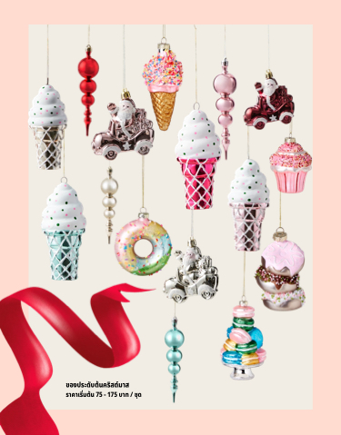ของประดับต้นคริสต์มาส ราคาเริ่มต้น 75 - 175 บาท / ชุด