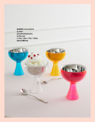 ALESSI จากประเทศอิตาลี รุ่น Amici ชุดถ้วยไอศครีมพร้อมช้อน รุ่น Big Love a Clear / Blue / Pink / Yellow ราคา 4,180 บาท
