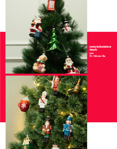 ของประดับต้นคริสต์มาส วัสดุแก้ว ราคา 75 - 150 บาท / ชิ้น