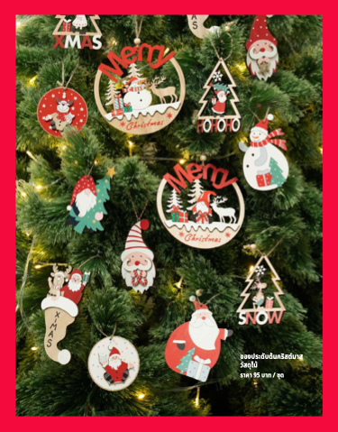 ของประดับต้นคริสต์มาส วัสดุไม้ ราคา 95 บาท / ชุด