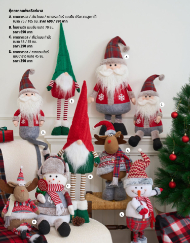 ซานตาครอส / สโนว์แมน / กวางเรนเดียร์ แบบยืน ปรับความสูงขาได้ ขนาด 75 / 105 ซม. ราคา 690 / 990 บาท