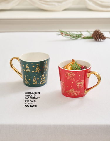 CENTRAL HOME ชุดแก้วมัก 2 ใบ XMAS GREEN&RED ความจุ 420 มล.ราคา 595 บาท พิเศษ 350 บาท